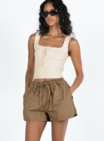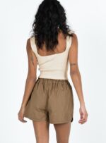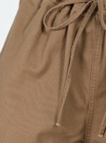 • Denim material, elasticated waistband with drawstring, twin hip pockets