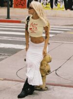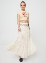 - Graphic print baby tee, cap sleeves
