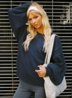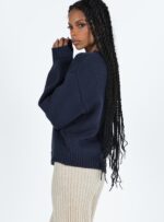 Home Sweatshirts Harmony Balloon Sleeve Knit Sweater Navy