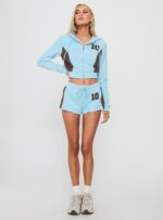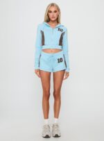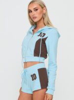 - Dual zipper fastening, adjustable hood ties, cropped fit, ribbed cuffs & waistband, varsity graphic